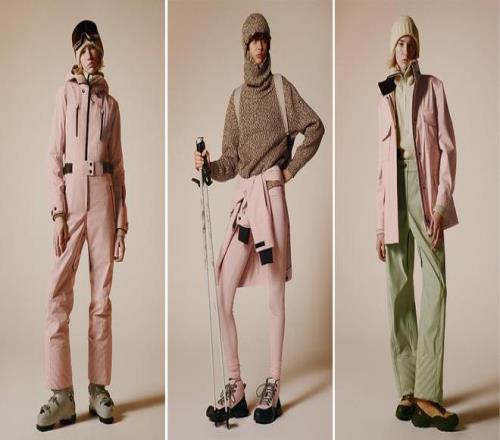 百搭的中性疊穿造型包含許多亮眼元素,如滑雪版的Nuptse半開襟套頭夾克和Traveller夾克,均以三層Bristol科技面料重新演繹,該面料是由品牌研發(fā)的一種創(chuàng)新型防潑水及防風(fēng)面料,經(jīng)Clima System技術(shù)處理,具有良好的熱調(diào)節(jié)性能。本系列其他創(chuàng)新型高科技單品包括Adelboden款上下裝,采用Wool Cash Melange Clima System面料;以及Lavazei款上下裝,由真絲、羊絨和初剪羊毛混紡而成,采用微型提花針法,表面呈現(xiàn)出鋸齒狀像素效果和冷灰色調(diào)。滑雪衣櫥中還有Nanga滑雪服套裝、Bansko背帶褲,以及羊絨和Cashfur針織品,采用迷迭香色、鼠尾草色、棕色和帶沙色點綴的黑色。