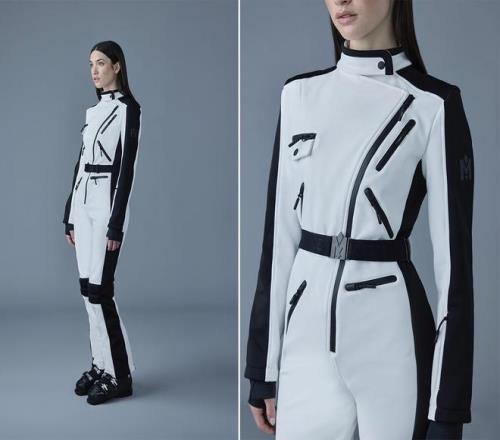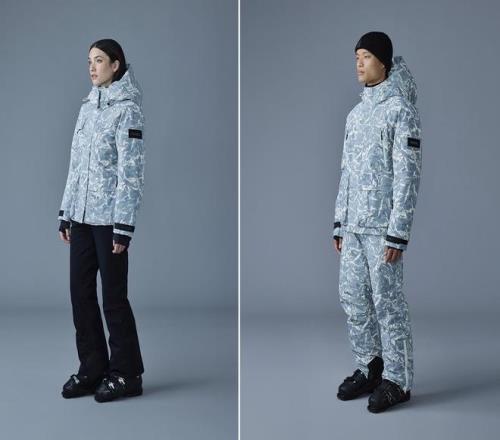 右:MACKAGE男士連帽碎冰藍滑雪羽絨服FROST-FP及男士背帶碎冰藍滑雪褲KENYON-FP