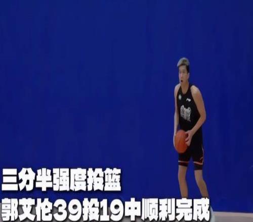 在三分半自投自搶投籃和折返跑測試的二選中,郭艾倫選擇了三分半投籃。盡管投籃不是他的強項,但郭艾倫依舊用39投19中的數據,順利完成了。