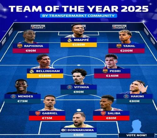 北京時間12月6日,德轉通過用戶投票評出2025年的最佳陣容,姆巴佩和亞馬爾領銜,巴塞羅那和巴黎圣日耳曼各有3名球員入選,皇家馬德里和阿森納2人入圍。
