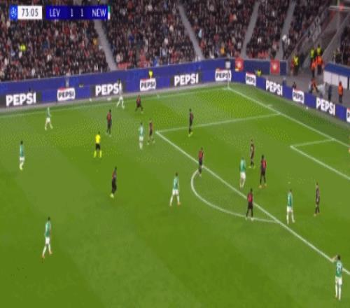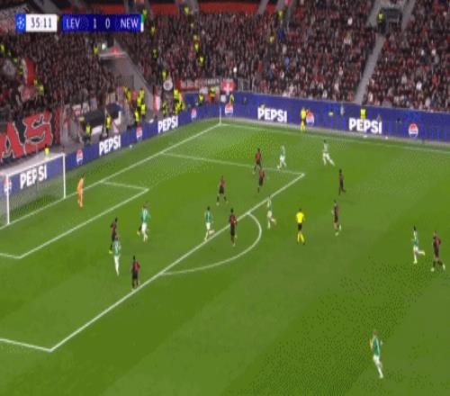 第88分鐘,馬扎助攻,格里馬爾多插射破門扳平比分,勒沃庫森2-1紐卡