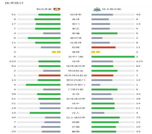 第36分鐘,紐卡右路低傳,加西亞伸腳破壞險些烏龍,弗萊肯奮力擋出