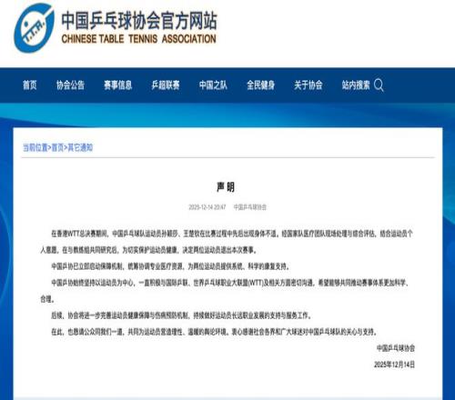 12月14日,中國(guó)乒乓球協(xié)會(huì)發(fā)布聲明,全文如下: